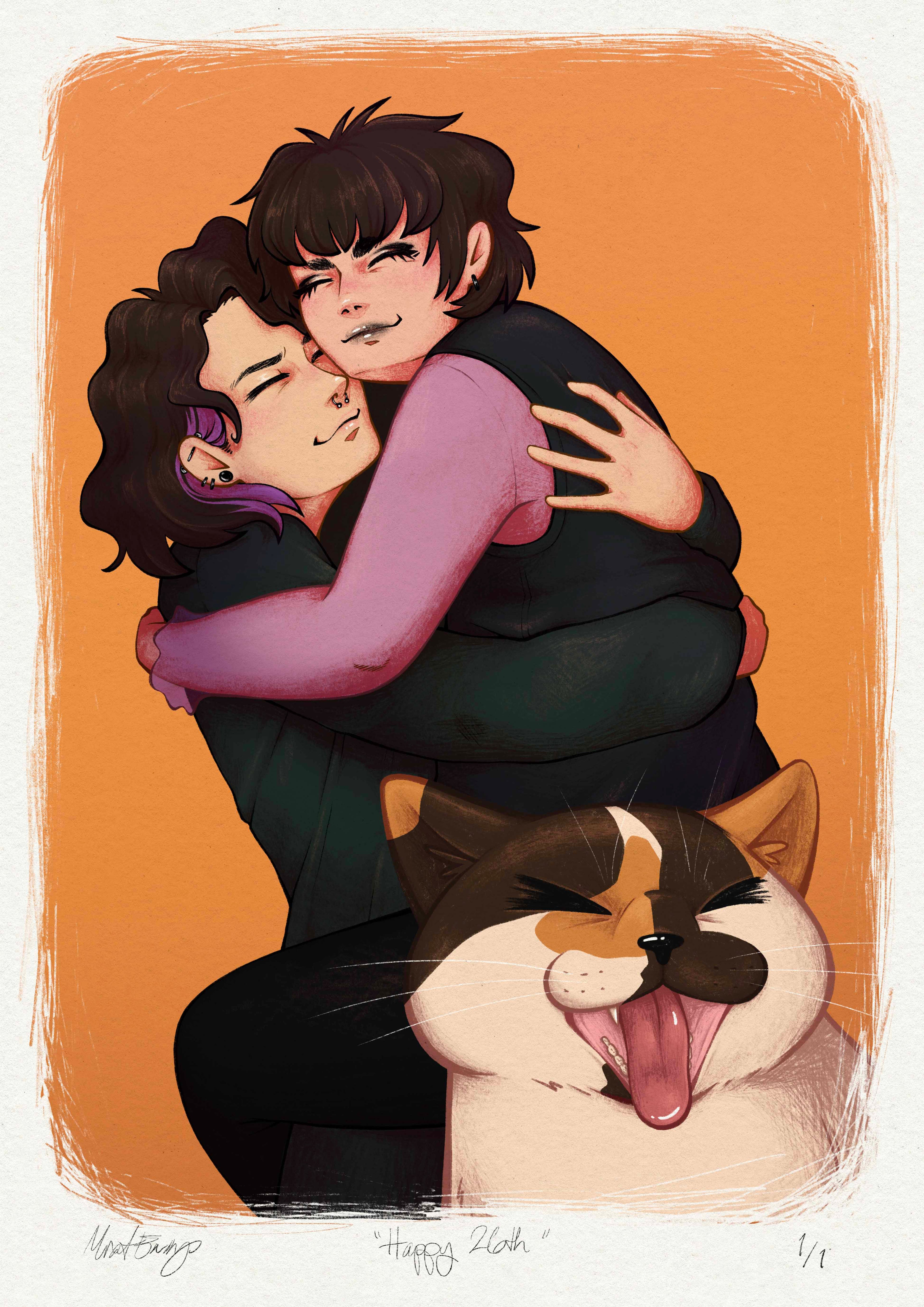 Previous commissions include custom printsand digital pieces, based on existing products I sell or something completely different. I have made multiple couples portraits, pet portraits and some fursona artwork and character sheets. I am also available for professional freelance illustration work for your small or bigger buisness based in Norway.